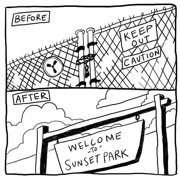 Living next to or in the vicinity of brownfields can have negative health effects as well as lower property values. Federal and state agencies provide grant opportunities to evaluate, clean up, and redevelop brownfields into greenspaces, residential housing, commercial or industrial uses. The redevelopment of brownfields can eliminate health hazards, increase property values, increase the local tax base, and create jobs. The redevelopment of contaminated brownfields like Berry Lane Park in Jersey City, New Jersey and the William F. Pennington Life Center in Fallon, Nevada has transformed contaminated sites that were abandoned for decades, into safe and productive components of the community.